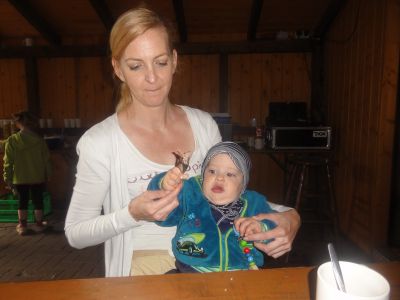 Der Nachmittag begann aber bei gutem Wetter mit einer modernen Schnitzeljagd. Der Wanderweg war mit GPS Geräten selbst zu erkunden. Dabei wurden mehrere Stationen eingerichtet und die Wanderer wurden von Punkt zu Punkt geleitet. Etwas später kamen beim Organisationsteam schon Zweifel über die Richtigkeit der GPS Koordinaten auf. Umso größer war die Erleichterung als alle Wander erschöpft aber glücklick wieder an der Biberhütte eintrafen. Das GPS Wandern hat allen Spaß gemacht und an jeder Station gab es tolle Belohnungen für die Kinder.