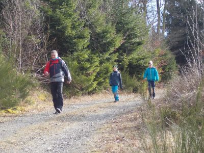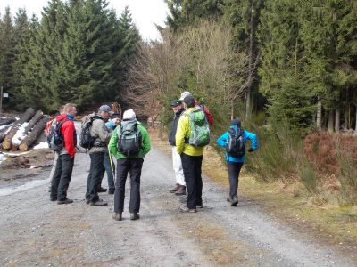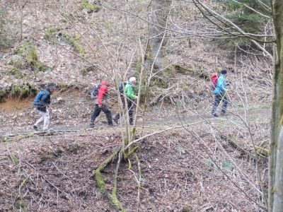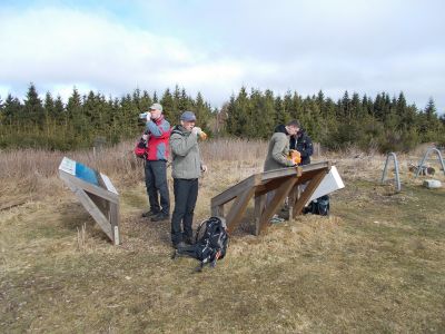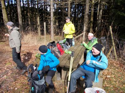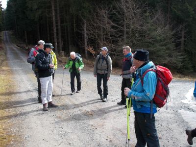 Weiter bergauf zur Homert, dem mit 656m höchsten Punkt unserer Wanderung. Von hier hatten wir einen wunderbaren Rundblick über das Sauerland. Jetzt war es nicht mehr weit bis zum Parkplatz am Birkenbrauck wo wir unsere verdiente Mittagspause machten. Frisch gestärkt querten wir die L 519 und es ging wieder bergauf Richtung Röhrenspring. Über den Förster Oswald Weg, hier lag tatsächlich noch Schnee, weiter zum Schluwwer-Hiärmen. Hier verließen wir den Höhenflug und wanderten durch das herrliche Naturschutzgebiet Richtung Waldeshöh und dann weiter nach Allendorf unserem Ziel Schröder‘s Landgasthof entgegen. Nach gut 25Km hatten wir den Frühling ordentlich begrüßt und belohnten uns dafür mit ein paar leckeren Getränken beim Schröder.