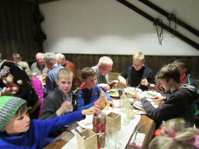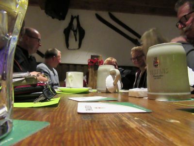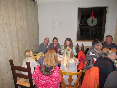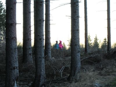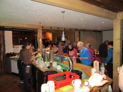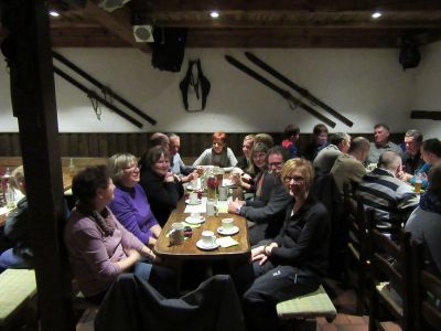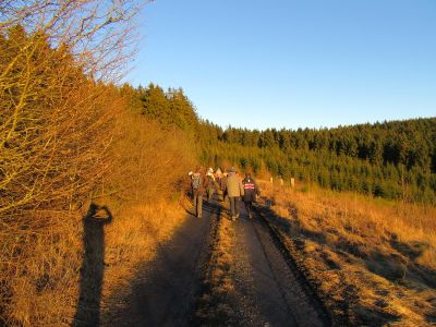 Der „obere Blackshahnsweg“ wurde zügig gemeistert, um an der Blackshahnsscheune eine zünftige Rast einzulegen. Eine „gute Fee“ hatte da etwas vorbereitet. Der Aussichtspunkt über den „Hagener Feldern“ wird seinem Zweck nicht mehr ganz so gerecht, die Natur hat nach Kyrill schon wieder ordentlich zugelegt. Bevor die Dunkelheit hereinbrach kam Steinbergs-Alm in Sicht. Hier gab es nach einem leckeren Getränk deftigen Grünkohl.