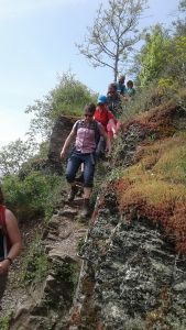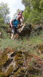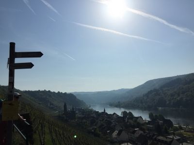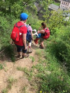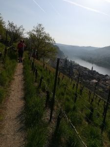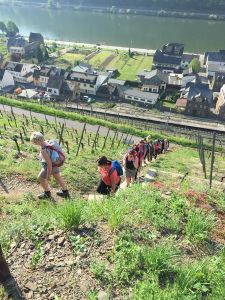 Am Sonntag ging es – mit bereits gepackten Koffern im Auto – nach Hatzenport, wo die vierstündige Wanderung startete. Der Wanderweg führte auf teilweise urwüchsigen Pfaden durch Weinberge, Wälder und Felder. Zwischendurch gab es als Belohnung immer wieder phantastische Ausblicke auf das Moseltal. Zum Ende der Tour stand dann noch ein bisschen “Nervenkitzel” auf dem Programm, als einige Kletterpassagen zu bewältigen waren. Zum Glück konnte der Steig aber auch umwandert werden, so dass einige Damen auf harmlosen Pfaden zum vorher vereinbarten Treffpunkt gelangen konnten. Nach einer letzten gemeinsamen Stärkung ging es dann zurück ins Sauerland.