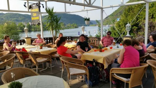 Freitags um 13.30 Uhr machte sich die Gruppe mit zwei Bullis und einem PKW auf den Weg in Richtung Brodenbach. Nach einer etwa 3-stündigen Fahrt war das Hotel Anker erreicht, wo der Tag mit gemütlichen Stunden auf der großen Terrasse des hauseigenen Panoramacafés sowie einer Ortsbegehung von Brodenbach seinen Ausklang fand.