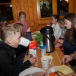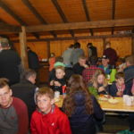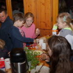 Um 09.00 Uhr trafen sich die „Spätaufsteher“ zur Maiwanderung. 43 kleine und große Wanderer machten sich vom Marktplatz aus auf, um mit einer kurzen Wanderung den Mai zu begrüßen. Der Regen war abgeklungen und bei ordentlichem Wanderwetter ging es „Am Krausen Baum“ vorbei Richtung Klute -Lenze . Der kurze, knackige Anstieg auf den Hengstenberg belohnte uns mit schöner Aussicht Richtung Sorpesee und Langscheid. Der Weg über den Hengstenberg ist eben immer zu empfehlen, auch wenn die Aussichtspunkte langsam wieder zuwachsen. Weiter, vorbei an Peterschulten Scheune, ging es auch für uns Richtung Biberhütte. Dort wartete das reichhaltige Frühstücksbüfett mit allem, was das Herz begehrt schon auf uns. Selbst Rührei, gebratener Speck und Nürnberger Würstchen waren im Angebot. Ein herzlicher Dank an unsere fleißigen Frühstücksfeen! So gestärkt konnte der Mai gebührend, in gemütlicher Runde, mit allen Wanderern begrüßt werden.
