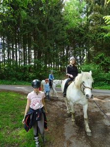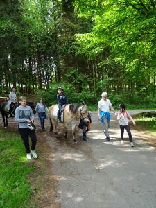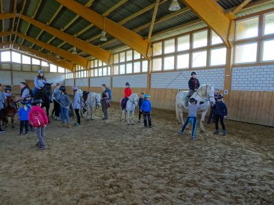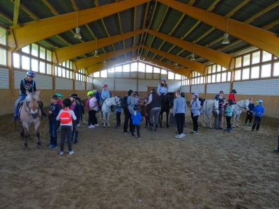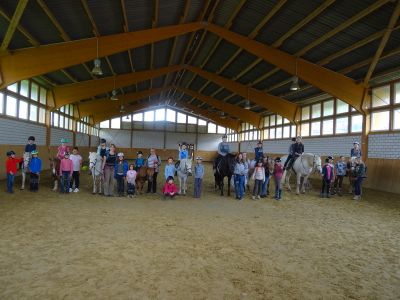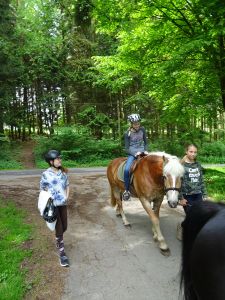 Gegen 14:45 Uhr waren wir zurück auf dem Nehlingshof. Vorort konnten die Kids noch ein paar Runden in der Reithalle reiten, bevor es dann ans Absatteln ging.