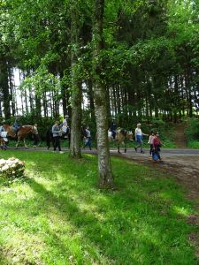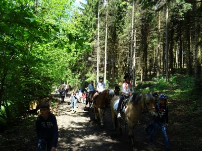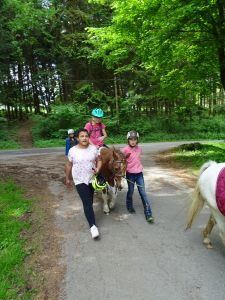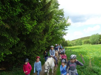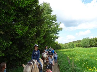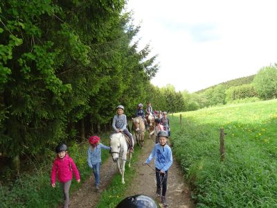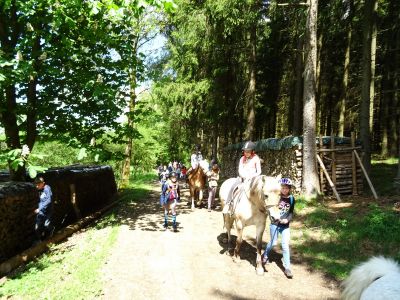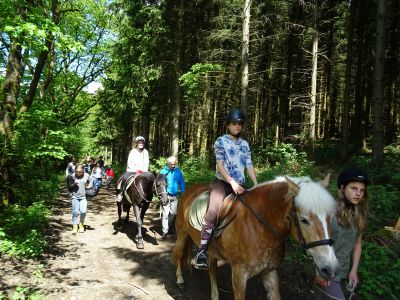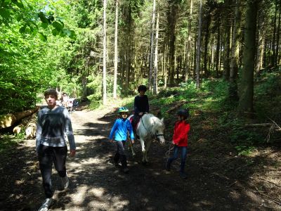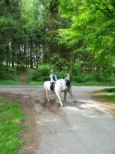 Nach einer kurzen Begrüßung und Vorstellungsrunde der Kinder und Begleitpersonen der SGV Abteilungen Allendorf und Bamenohl wurden mit Hilfe der Reitlehrerin, Bettina Werner, die Pferde von der Weide geholt. Diese wurden gewaschen, geputzt und gesattelt. Zu Mittag wurden uns leckere Nudeln mit Tomatensauce serviert. Gestärkt ging es dann für 2 Stunden durch die Hagener Wälder. Die Kinder wechselten sich regelmäßig mit dem Reiten der Pferde ab, sodass jeder etwa eine halbe Stunde auf dem Pferd verbringen konnte. Die restliche Zeit wurde gewandert.