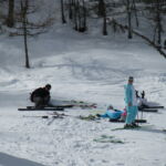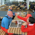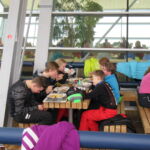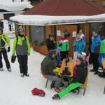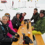 Auch am Samstag konnte uns das etwas wechselhafte Wetter mit Sonne, Nebel und etwas Schneefall nicht von reichlich Pistenkilometern abhalten. Die Fortgeschrittenen Skischüler machten Funparks unsicher und übten sich im Springen und Rückwärtsfahren. Alle hatten viel Spaß dabei. Das neu erlernte Können wurde am Nachmittag selbstverständlich in Eigenregie fleißig weiter geübt. Zur letzten Abfahrt trafen wir uns am Dohlennest. Auf dem Weg ins Tal hielten wir noch kurz am Check Piont. Dort konnten die Großen kurz anhalten und sich mit Stimmungshits für Skifahrer im Apres Ski üben. Unser Nachwuchs hatte eine Stunde Zeit zum Chillen, oder wer noch konnte, lief die Pisten hoch und rutschte auf dem Hosenboden über den frisch präparierte Schnee wieder runter. Nach dem Abendessen ließen wir den Tag gemeinsam in gemütlicher Runde ausklingen.
