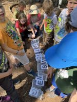 Anhand eines Fotos mussten die Kids zum Stationsweg laufen, wo bereits die nächste Aufgabe versteckt war. Im weiteren Verlauf des Stationsweges waren an den einzelnen Stationen Buchstaben versteckt, die oben am Kreuz zu einem Lösungswort zusammengesetzt werden mussten.