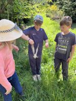 Während der Pause erkundeten die Kids den umliegenden Wald auf eigene Faust und fanden im Dickicht prompt ein Keiler-Gebiß. Weil nun alle etwas von dem Gebiß abhaben wollten, betätigte sich Matthias als Zahnarzt und zog den Keilern die Zähne, die dann entsprechend verteilt werden konnten.