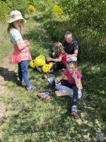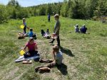 Die nächste Aufgabe bestand dann darin, die Luftballons, die entlang des weiteren Weges hingen, einzusammeln. Oben an der Lichtung angekommen, wartete aber erstmal die nächste Verpflegungsstation auf die Kids. Allerdings hatten mittlerweile auch leider die Ameisen unsere Verpflegungskiste entdeckt. Aber als diese endlich verscheucht waren, konnten sich die Kids mit Wasser, SGV-Apfelsaft, Donuts, Laugenbrötchen und Äpfeln stärken.