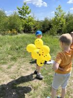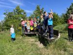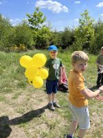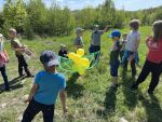 Nach der Pause wartete die nächste Aufgabe. Es sollte ein Spinnennetz aus Wolle gebaut werden, in dem dann die zuvor eingesammelten Luftballons (= Insekten) gefangen wurden. Auch hier waren die Kids mit Feuereifer bei der Sache und haben die Aufgabe in Teamarbeit super bewältigt.