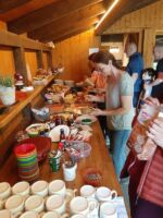 Für beide Wandergruppen war das Ziel die Biberhütte. Hier hatten fleißige Helfer ein abwechslungsreiches Frühstück vorbereitet, das von allen Wanderern sehr gelobt wurde. Ein herzlicher Dank geht an unsere fleißigen Frühstücksfeen!