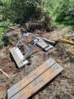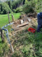 Am 09.08.2025 wurde der Bereich von Sträuchern befreit und der Unterbau sorgfältig vorbereitet. Zwei Tage später stellte eine kleine, bewährte Arbeitstruppe unter der Führung des ehemaligen Vorsitzenden – vielleicht sein letztes offenes Projekt? – die Unterkonstruktion auf und verschraubte sie mit neuen Brettern.