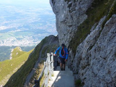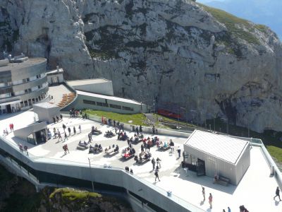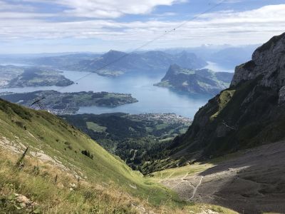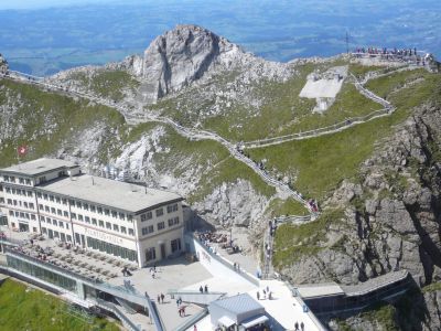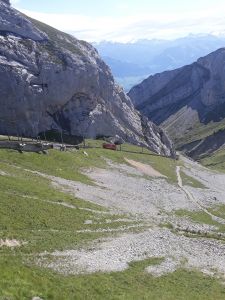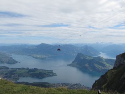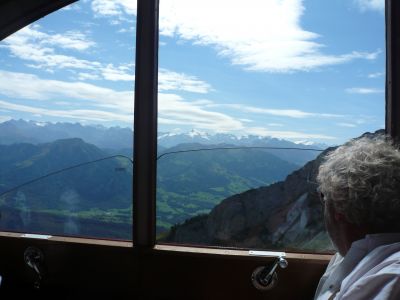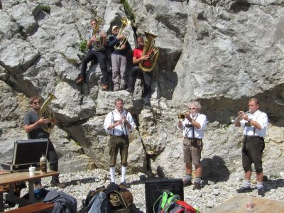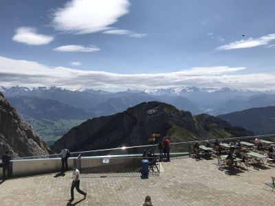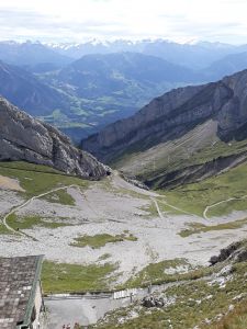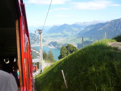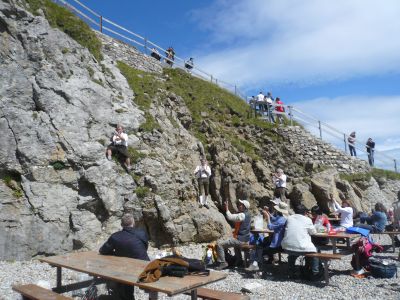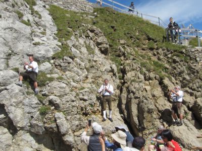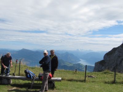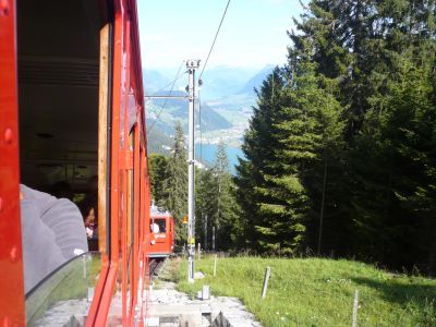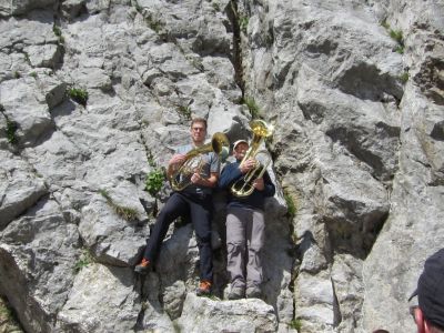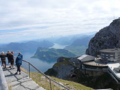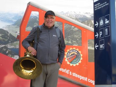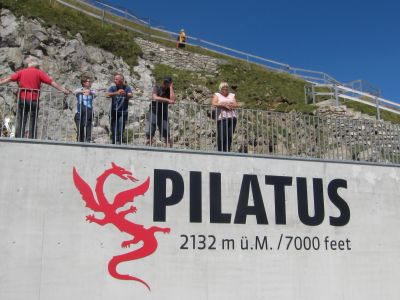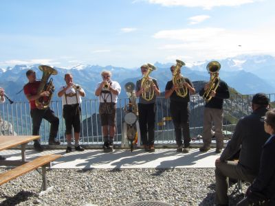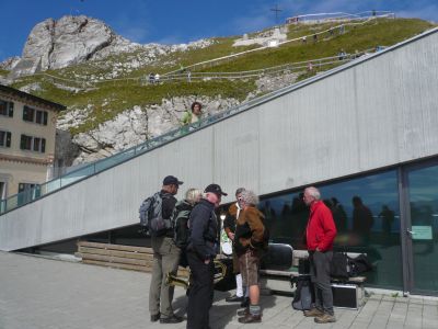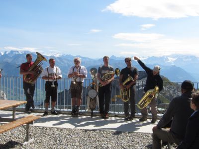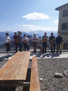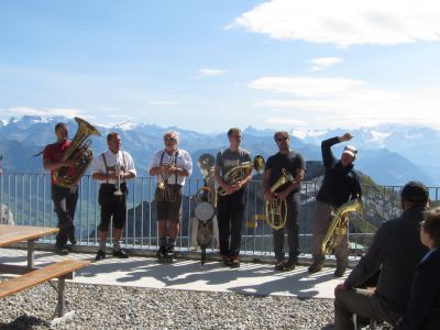 Auch das Wandern kam nicht zu kurz- ein zünftiger, anspruchsvoller Aufstieg zum Pilatus über 1200 Höhenmeter, forderte Kondition und Trittsicherheit. Am Gipfel in 2163 m wurden dann die Instrumente ausgepackt, die Lurlinge spielten hier zu Freude aller vor „internationalem Publikum“, mit Blick auf ein Alpenpanorama bei schönstem Wetter. Mit der steilsten Zahnradbahn der Welt, 45% Steigung, wurde dann der Abstieg gemeistert – ein Erlebnis der besonderen Art.