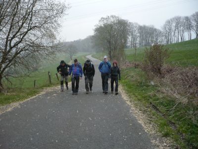 Graupel, Regen, Schnee und Sonnenschein, also typisches „Aprilwetter“ begleiteten die Wanderer aus Sundern bei der 3. Etappe der Wimpelwanderung nach Bochum.