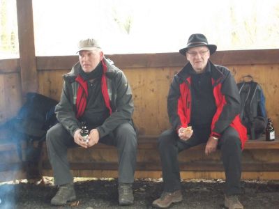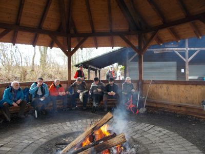 Passend zur Mittagszeit wurde eine Rast in der Amecker Grillhütte eingelegt. Die Amecker hatten gut vorgesorgt, ein wärmendes Feuer verhinderte das Auskühlen während man die angebotenen Würstchen und Getränke verzehrte. Trockenen Fußes kam die Gruppe im Gasthof Willeke-Wortmann zur abschließenden Einkehr an, während andernorts das Wetter seine Kapriolen schlug.