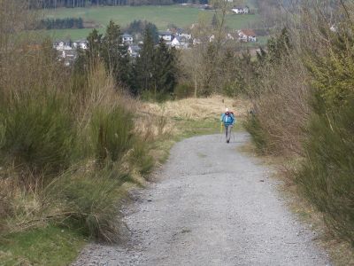 Den Altenberg bergab laufen wir in Stemel ein, queren die Straße und die still gelegte Bahnschiene. Kurz vor dem Sorpedamm geht der Kurs nach links, wieder, wie sollte es anders sein bergan Richtung Stück, oberhalb Sundern gelegen. Hier wird bei einer Rast der Proviant aufgebraucht, denn das Ziel ist nah.
