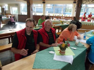 Als sich die letzten Wanderer gegen 11 Uhr aufmachten noch die 10 km Strecke zu laufen, waren die ersten frühen Starter bereits wieder da. Beim zwischenzeitlich starken Regen waren einige Wegmarkierung weggewischt worden, was die Orientierung teilweise sehr erschwert hat. Drei Teams waren den ganzen Tag damit beschäftigt die Markierungen nachzuzeichnen. Auch die ortskundigen Wanderer haben die Besucher, die teilweise sehr weit angereist waren, unterstützt. Das gesamte Organisationsteam war schließlich froh, dass alle Wanderer erschöpft aber wohlauf wieder in der Halle angekommen sind.