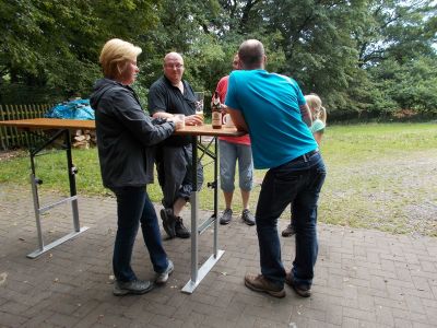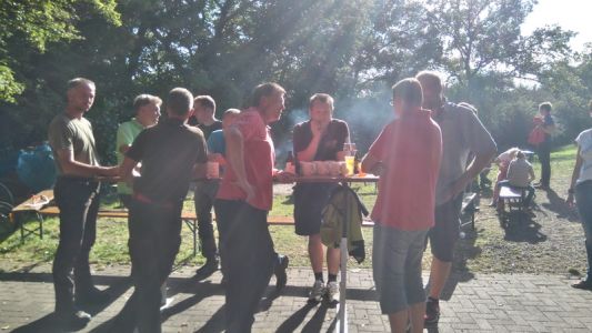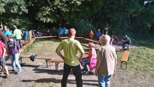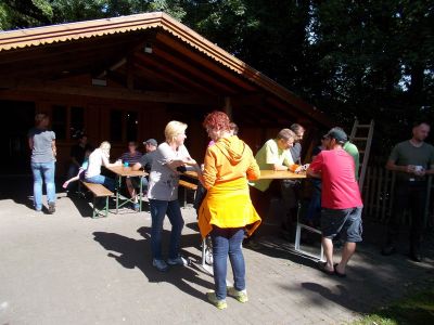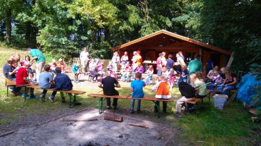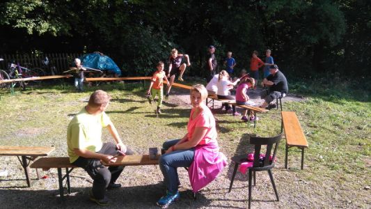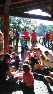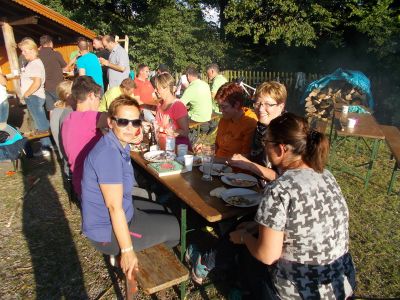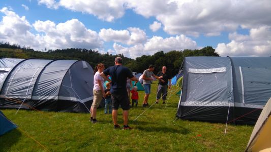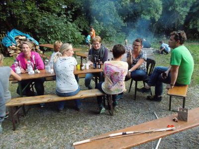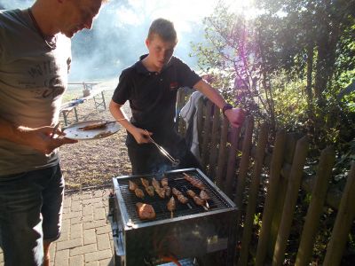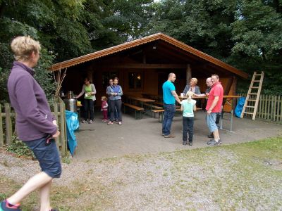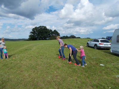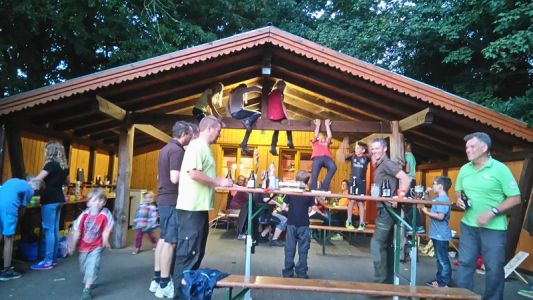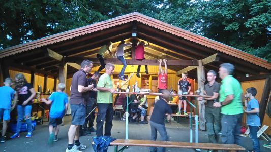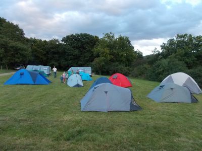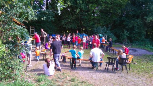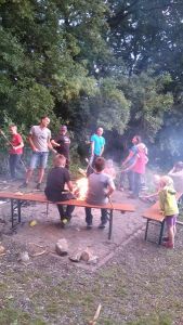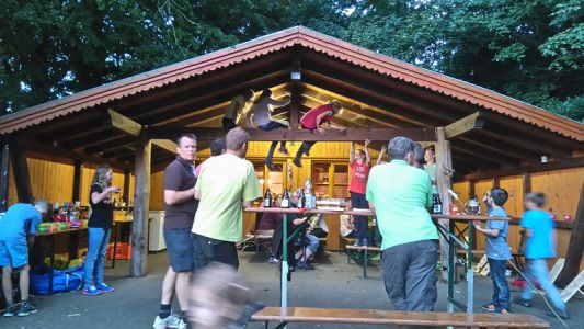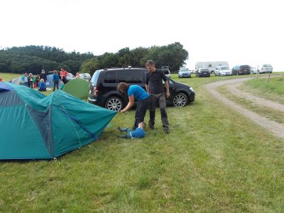 Am letzten Wochenende der langen und wie jedes Jahr doch zu kurzen Sommerferien trafen sich traditionell wieder die Kids mit ihren Familien zum Zelten an der Biberhütte. Los ging es am frühen Samstagnachmittag mit interessanten, schweißtreibenden und nicht zuletzt lustigen Zeltaufbauversuchen der jeweiligen Familien. Was soll man da sagen, einige Schlafstätten entpuppten sich als kleine Festzelte mit Ballsaal. So war es nicht verwunderlich, das sich der Aufbau bei dem einen oder anderen etwas Zeitintensiver gestaltete. Es bot sich ein kunterbuntes Bild auf der Biberhüttenwiese und man kam aus dem Staunen und Schmunzeln gar nicht heraus als sogar die ersten Behausungen auf vier Rädern anrollten. Langjährige Zelterfahrungen hatten einige, wenige Familien dazu bewogen die Nacht im Wohnmobil oder im bewohnbaren Bulli zu verbringen. Auch gut! Hauptsache ein Bett vor Ort 😉