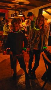 Abschließend waren sich alle einig: „Schmeißt den Grill an, denn das haben wir uns jetzt verdient!“ Und so wurde nicht nur der Grill, sondern zur Freude der Kids auch gleich das Lagerfeuer angezündet. Nach so viel Aktionen, Stockbrot und Feuer sollte man meinen die Kids wären müde….aber….nicht doch! So eine kleine Nachtwanderung, das wäre noch drin 😉 Zum krönenden Abschluss machten sich also die Väter mit den Kindern und gefühlt 2000 Knicklichtern auf den Weg zu den Ziegen an der Steinert. Die Tiere waren sicher erstaunt über den Anblick der bunt leuchtenden Karawane. Nun waren zumindest die jüngsten wirklich Bett reif. Ziel erreicht!!! Den frei gewordenen Platz am Lagerfeuer nutzen die Erwachsenen natürlich noch für den gemütlichen Teil mit dem ein oder anderen „erfrischenden“ Getränk.
