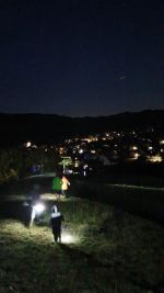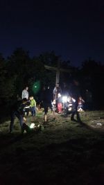 Mit Spannung erwarteten die Kinder die angekündigte Nachtwanderung mit Dennis und Dirk und diversen Hunden. Nach Einbruch der Dämmerung war es soweit und der Tross rollte los in Richtung Kreuz auf der Steinert.
