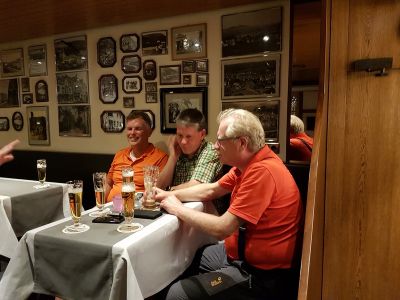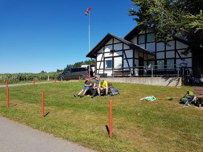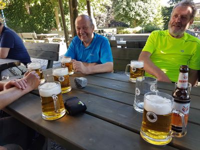 In Calle angekommen wurde die nächste Pause an der Caller-Mühle gemacht. Frisch gestärkt ging es auf zum Hennesee, wo am Hotel Hennedamm schon ein weiterer Langscheider Wanderfreund mit Getränken wartete. Hier wurde ein schöner gemeinsamer Abend verbracht, bevor es am nächsten Morgen über den Ruhrhöhenweg weiter ging, bergauf und bergab und durch den Ort Eversberg hindurch.
