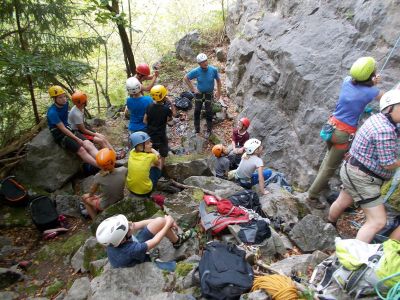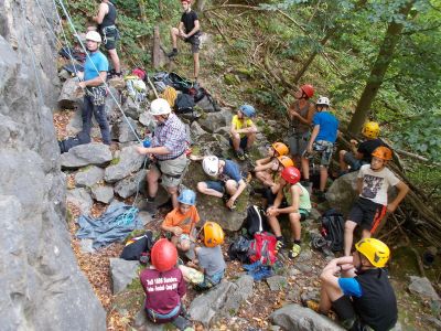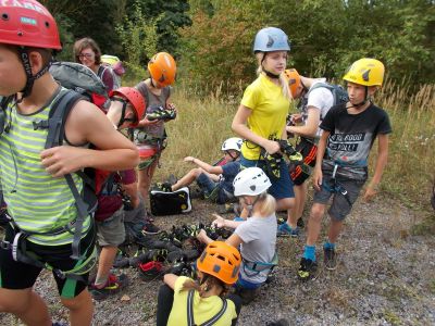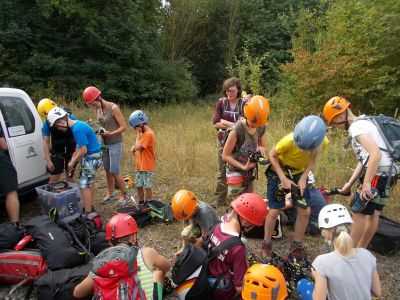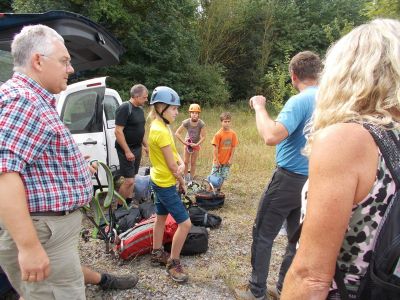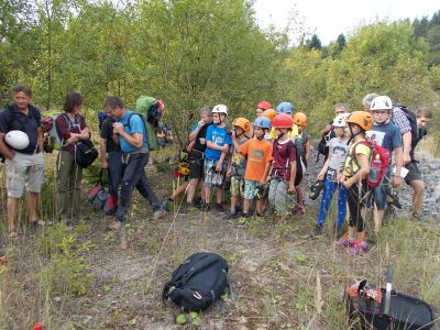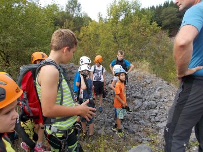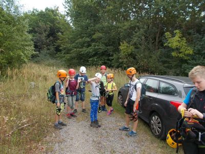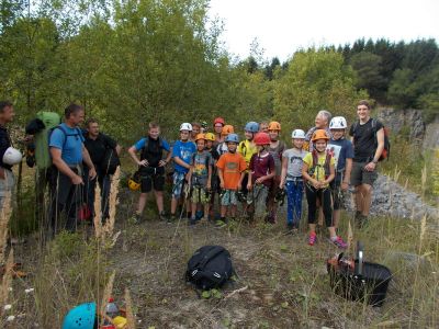 Am Sonntag den 11.09.2016 trafen wir uns, beim besten Wetter, mit 14 Kindern zwischen 8 und 13 Jahren und 3 Erwachsenen um 09:45 Uhr am Marktplatz. Von hieraus ging es mit 3 PKWs Richtung Steinbruch, wo wir bereits von Herrn Schneider und Kollegen vom deutschen Alpenverein erwartet wurden.