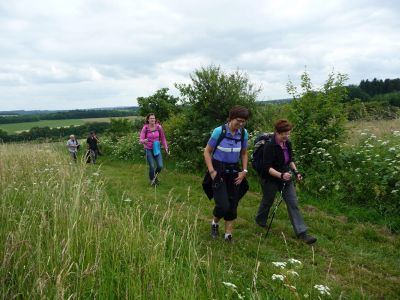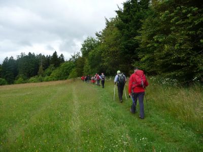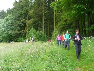 – Gipfel Tour Schotten: Diese Erlebnistour führte über artenreiche Bergwiesen und durch abwechslungsreiche Waldgebiete mit urwüchsigen Basalformationen. Sie bot herrliche Aussichten. Von den höchsten Gipfel des Vulkanmassives. Von weitem wirkt der Vogelsberg eher flach. Doch die Westflanke ist steil mit 500 Höhenmeter von Schotten zum Hoherodskopf. So konnte die Schottener Gipfeltour durchaus alpine Gedanken wecken. Sie führte auf 14 km über insgesamt 4 Gipfel im Oberwaldbereich mit teilweise strammen anstiegen. Die abwechslungsreiche Landschaft und die atemberaubende Aussicht bis zur Frankfurter Skyline am Mainufer lassen jede Anstrengung schnell vergessen.