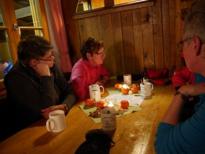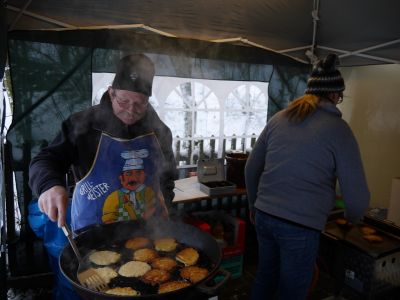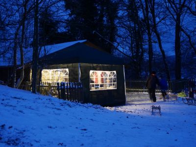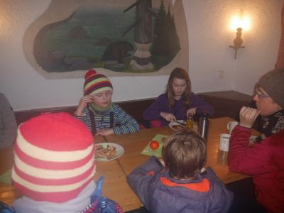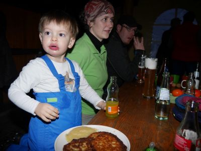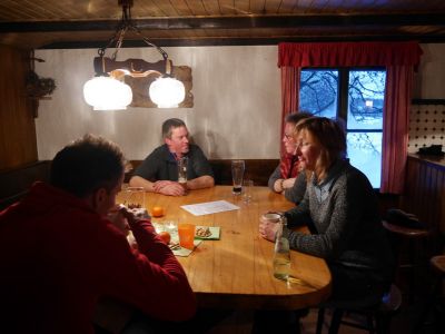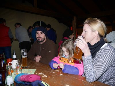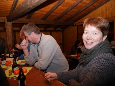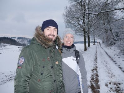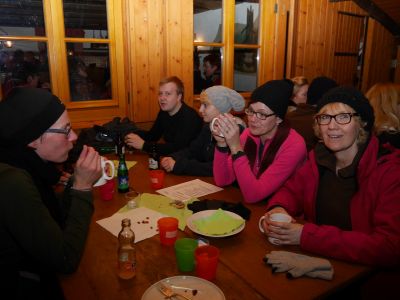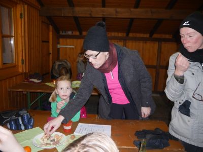 Auf dem Weg hat der Himmel auch kurz die Wolkendecke aufgerissen und der Sonne den Weg freigemacht. Dabei gab es sprichwörtliches Bilderbuchwetter und es boten sich tolle Blicke vom Hengstenberg auf das schmucke Allendorf. Damit der Überraschungen nicht genug. Beide Wandergruppen trafen fast zeitgleich an der Biberhütte zum Reibekuchenessen ein. Ein Rätsel, da die eine Wanderstrecke doch deutlich kürzer war. In molliger Wärme wurden dann leckere Reibekuchen gegessen. Alle waren zufrieden den Tag so gut genutzt zu haben. Das Wandern macht also bei Schnee und Eis und klirrender Kälte besonders viel Spaß!