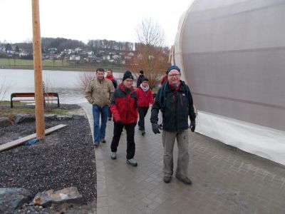 Die diesjährige Winterwanderung startete am Allendorfer Marktplatz. Über den Golfplatz ging es zur neuen Sorpeweg in Amecke. Im Anschluss an die Wanderung konnte sich jeder mit Reibekuchen an der SGV Biberhütte stärken.